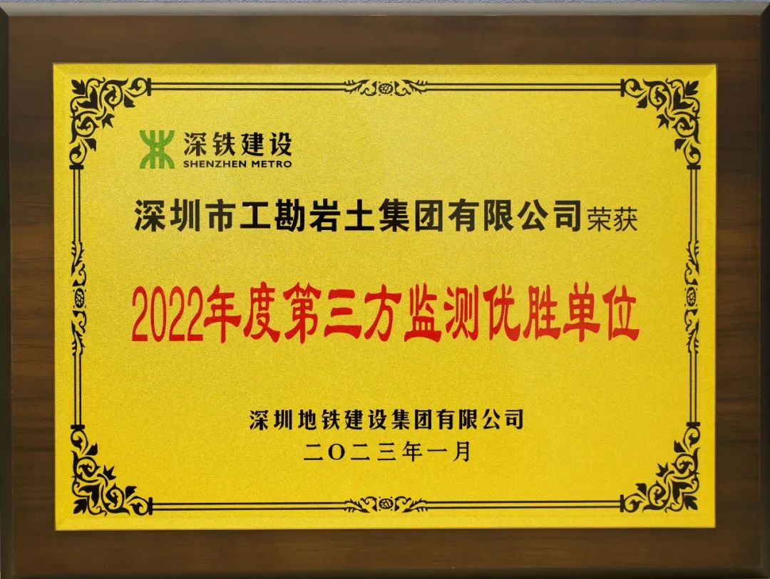 喜報(bào)!工勘集團(tuán)榮獲“深鐵建設(shè)集團(tuán)2022年度第三方監(jiān)測(cè)優(yōu)勝單位”